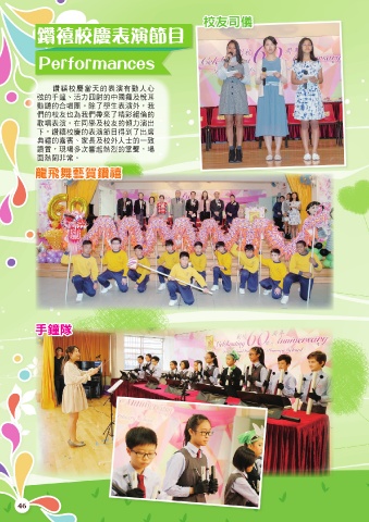 校友司儀 鑽禧校慶表演節目 Performances ᐤࣧᅅ˂ٙڌစϞਗɛː ָٙ˓ᙒeݺɢ̬࢛ٙʕႀʿࣀЀ ਗᛓٙΥਨྠfৰəኪ͛ڌစ̮dҢ ࡁٙࣧʾɰމҢࡁ੭Ըəၚഒࡐٙ ဂਨڌစfίΝኪʿࣧʾٙහɢစ̈ ɨdᐤࣧᅅٙڌစືͦՑə̈ࢩ ՊᓿٙྗႷeڗʿ̮ࣧɛɻٙɓߧ ሧdତఙεϣᚤৎᆠडٙᑊdఙ ࠦᆠችڢ੬f 龍飛舞藝賀鑽禧 手鐘隊 46