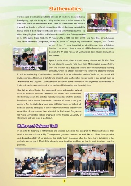 in and understanding of mathematics. In addition, in order to broaden students' horizons, our school will S5C CHOW CHI HO S4B LEUNG MAN TIK