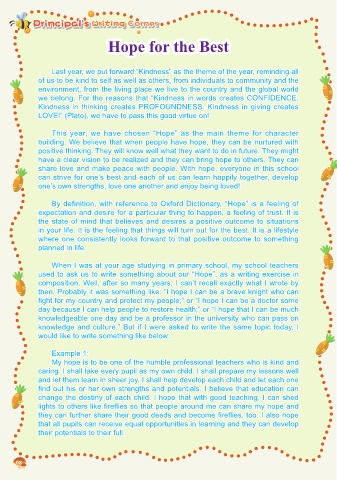 This year, we have chosen “Hope” as the main theme for character
