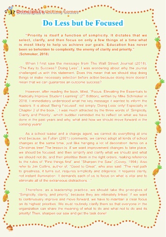 readers. It is about ‘Being Focused’, not simply ‘Doing Less’ only! Especially in