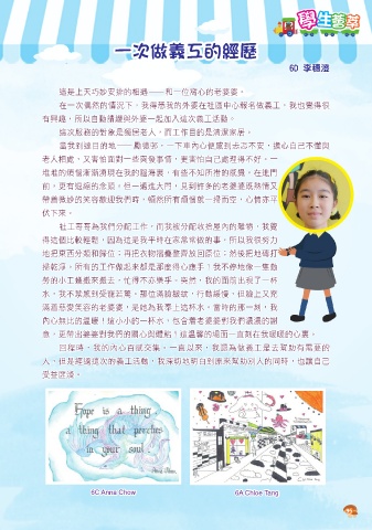 人,但是經過這次的義工活動,我深切地明白到原來幫助別人的同時,也讓自己