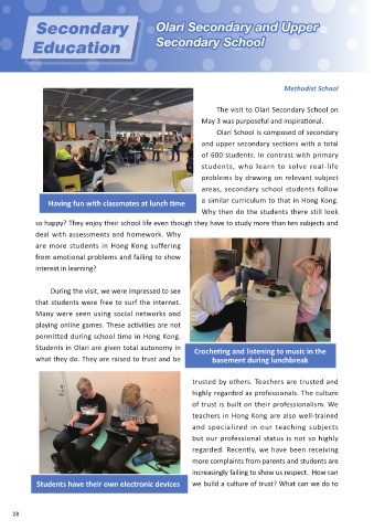 Students in Olari are given total autonomy in Crocheting and listening to music in the