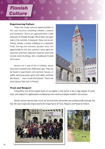 trip. We were especially impressed by the importance of Trust, Respect and Peace in Finland.