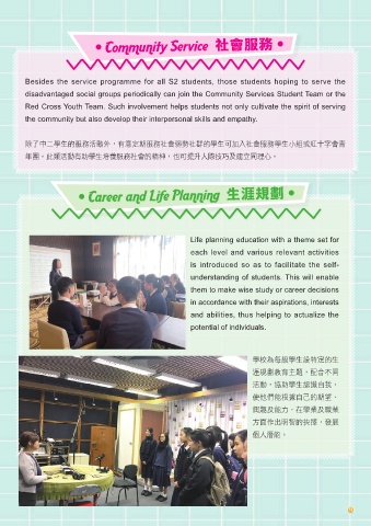 除了中二學生的服務活動外,有意定期服務社會弱勢社群的學生可加入社會服務學生小組或紅十字會青