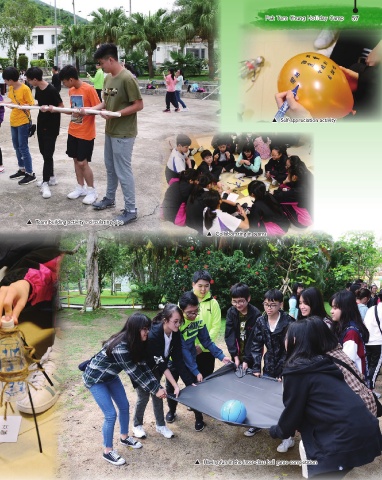 Pak Tam Chung Holiday Camp 57  Self-appreciation activity  Team building activity - circulating pipe  Collaborating in teams  Having fun in the inter-class ball game competition