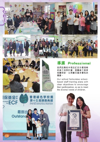 幼 稚 園 專業 Professional ҢࡁΪᏐ͉ࣧઋرࠈ֛ͦᅺ౸ ٙࡰʈࠇྌdོᎸࡰʈટա ᗫd˸ᚥՅഁεᅵٙ ცࠅf Our school formulates school- based staff training plans with clear objectives to encourage their participation, so as to meet the diverse needs of children. 146