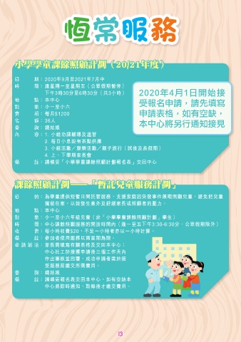 備 註 : 請填妥「小學學童課餘照顧計劃報名表」交回中心