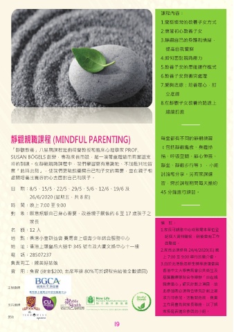 持的訓練。在靜觀親職課程中,我們學習更有意識地、不加批判地留 靜坐、靜觀步行等﹞ ,小組