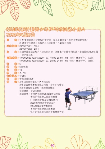 ※學員請穿著運動服裝及球鞋,自備乒乓球拍