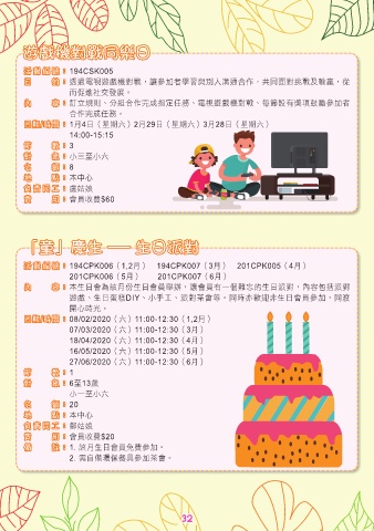 遊戲、生日蛋糕DIY、小手工、派對茶會等。同時亦歡迎非生日會員參加,同渡