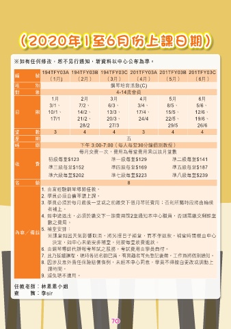 (2020年1至6月份上課日期)