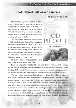 I was first attracted by the title of the book, My Sister’s Keeper, which suggests