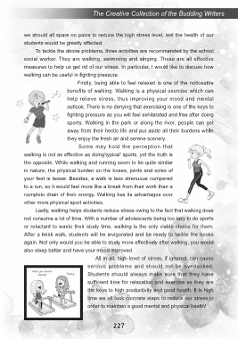 Lastly, walking helps students reduce stress owing to the fact that walking does