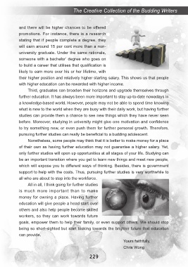 of their own as having further education may not guarantee a higher salary. Yet,
