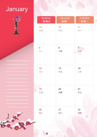 January 1 月 星 期日 星期 一 星 期二 星 期三 星期 四 星 期五 星 期六 29 30 31 1 2 3 4 初四 初五 初六 元旦 初八 初九 初十 5 6 7 8 9 10 11 十一 小寒 十三 十四 十五 十六 十七 12 13 14 15 16 17 18 十八 十九 二十 廿一 廿二 廿三 廿四 19 20 21 22 23 24 25 廿五 大寒 廿七 廿八 廿九 三十 初一 26 27 28 29 30 31 1 初二 初三 初四 初五 初六 初七 初八 9