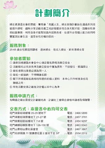 能提升課程、趣味分享活動及義工培訓發掘女性自身天賦才能,鼓勵女性參