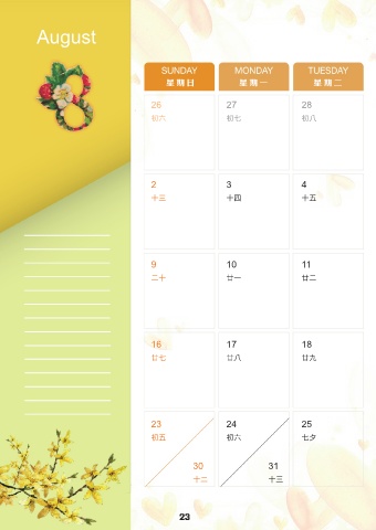 廿七 廿八 廿九 七月 初二 初三 處暑