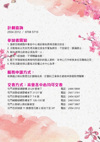 屯門山景邨山景社區會堂 電話:2467 3867
