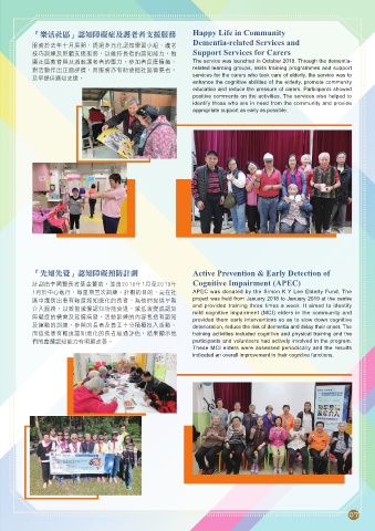 及運動的訓練,參與的長者及義工十分積極投入活動, deterioration, reduce the risk of dementia and delay their onset. The