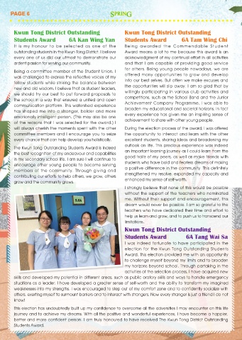 better and more confident person. I am truly honoured to have received The Kwun Tong District Outstanding