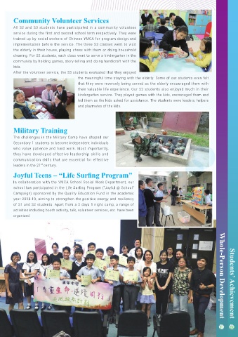 of S1 and S2 students. Apart from a 2 days 1 night camp, a range of