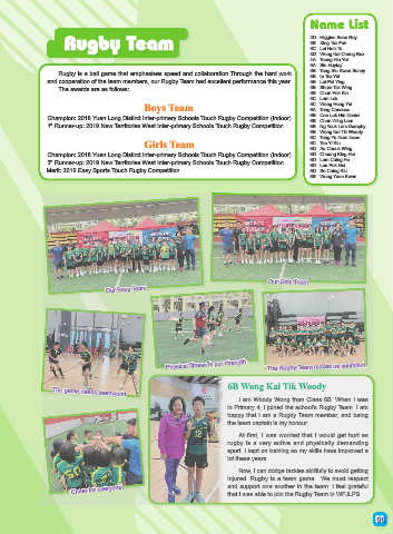and cooperation of the team members, our Rugby Team had excellent performance this year. 5B Lui Pui Ying
