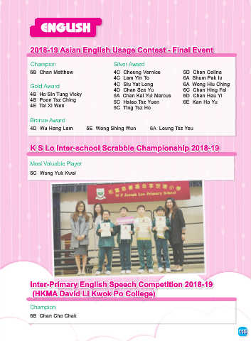4B Ho Sin Tung Vicky 5A Chan Kai Yui Marcus 6D Chan Hau Yi