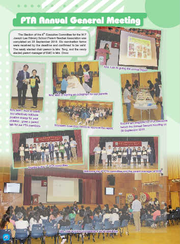 elected parent manager of SMC is Mrs. Chow. Mrs. Lam is giving the annual report.