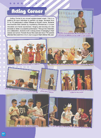 P.1 to P.5 participate in either Chinese or English drama. Students