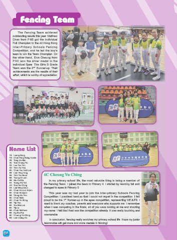 5A Chun Sumyue This year was my last year to join the Inter-primary Schools Fencing