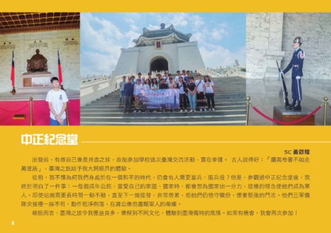 出發前,有感自己像是井底之蛙,故能參加學校這次臺灣交流活動,實在幸運。 古人說得好:「讀萬卷書不如走