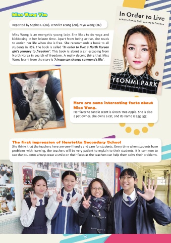 Miss Wong is an energetic young lady. She likes to do yoga and