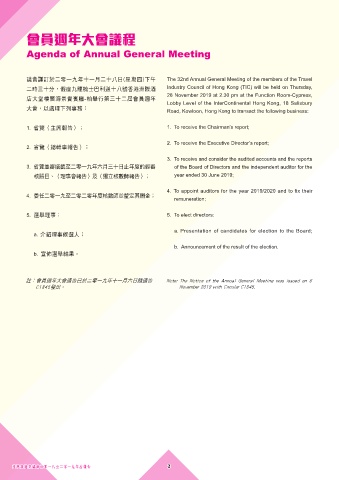 議會謹訂於二零一九年十一月二十八日(星期四)下午 The 32nd Annual General Meeting of the members of the Travel