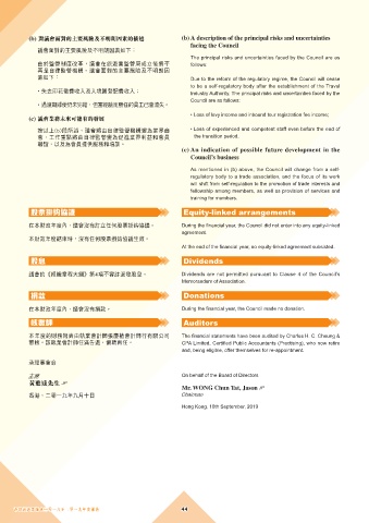 (b) 對議會面對的主要風險及不明朗因素的描述 (b) A description of the principal risks and uncertainties