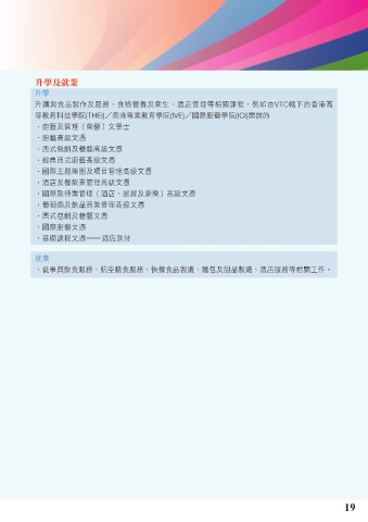 升讀與食品製作及服務、食物營養及衛生、酒店管理等相關課程,例如由VTC轄下的香港高