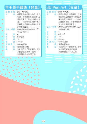 內 容 : 教授製作羊毛氈的技巧,學習 內 容 : 教授使用3D立體畫筆,並製