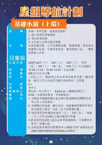 備 註 : 1. 活動由本會賽馬會社區星導計劃(SENCO)團隊與本