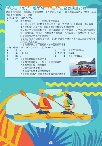 內 容 : 教授獨木舟一、二、三星章證書課程內容︰