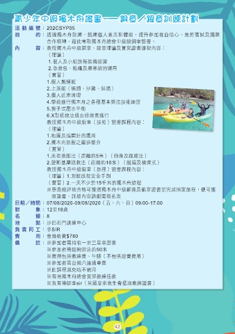 內 容 : 教授獨木舟中級銅章、銀章理論及實習證書課程內容︰