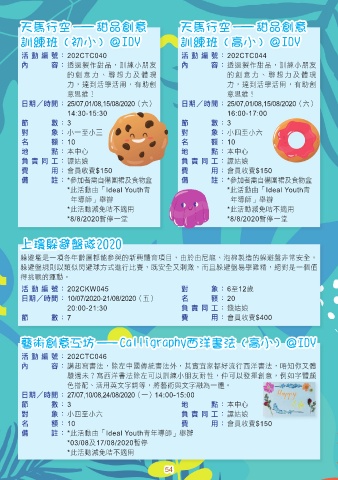 日期/時間 : 10/07/2020-21/08/2020(五) 名 額 : 20