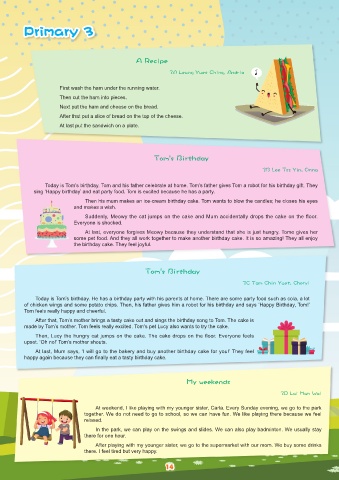 made by Tom’s mother. Tom feels really excited. Tom’s pet Lucy also wants to try the cake.