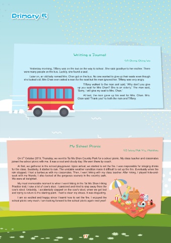 joined the school picnic with me. It was a cool and cloudy day. We went there by coach.