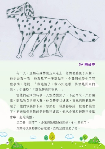 他走去看一看,他看見了一隻斑點狗,企鵝問他發生了甚