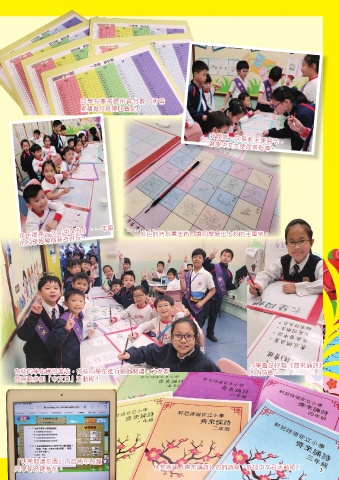 同學投擲飛鏢所得分數,將會 累積進行班際比賽呢! 謝謝中文大使從旁指導。 我們第一次拿起毛筆寫字, 本年度第一次「中文日」,一年級 彩色的清水書法布,讓同學寫出七彩的毛筆字。 的同學都覺得新奇好玩。 同學嘗試抄寫《齊來誦詩》 有些同學在練習書法,有些同學在進行網上閱讀,大家都 內的詩歌。 很喜歡參加「中文日」活動呢! 「快樂閱讀花園」內容簡單有趣, 同學都踴躍參加。 快來背誦《齊來誦詩》內的詩歌,參加中文日活動吧! 3