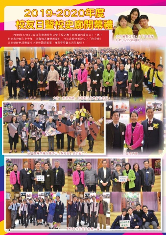 2019-2020年度 校友日暨校史廊開幕禮 2019年12月6日是本年度的校友日暨「校史廊」開幕禮的重要日子。為了 小司儀要加油,台下的都是 紀念我校創立七十年,回顧過去輝煌的歷史,今年我校特別設立了「校史廊」 你們的師兄師姐呢! 以紀錄軒尼詩道官立小學校園的點滴,齊來看看當天的花絮吧! 大家一起唱校歌,回憶起以往美好的時光。 各位嘉賓準備好要拼出「校史廊」的拼圖了。 友賢再聚 34 不同年代的舊生共聚一堂