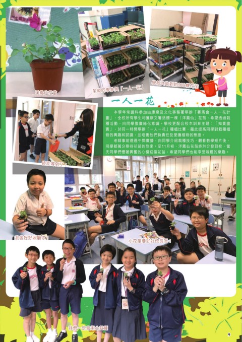 劃」,全校所有學生均獲康文署送贈一棵「洋鳳仙」花苗,希望透過栽