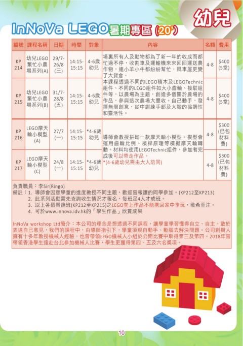 3. 以上各個興趣班(KP212至KP215)之LEGO堂上作品不能携回家中享玩,敬希垂注。