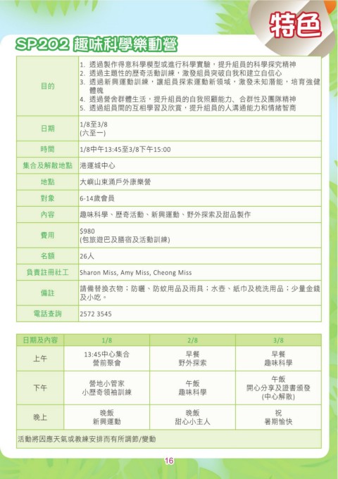 ʫ࢙ 趣味科學、歷奇活動、新興運動、野外探索及甜品製作