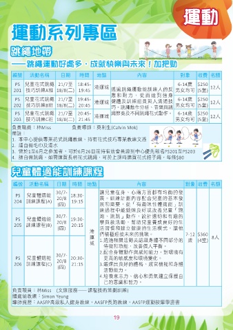 201 技巧訓練A班 18/8(二) 19:45 港運城 透過跳繩運動能訓練人的反 男女均可 (5堂) 12人