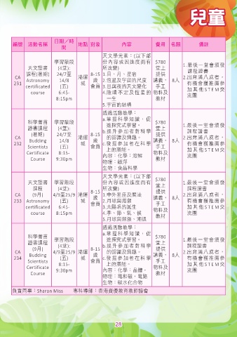 課程(暑期) 24/7至 8-15 1. 日、月、星宿 提供 課程證書